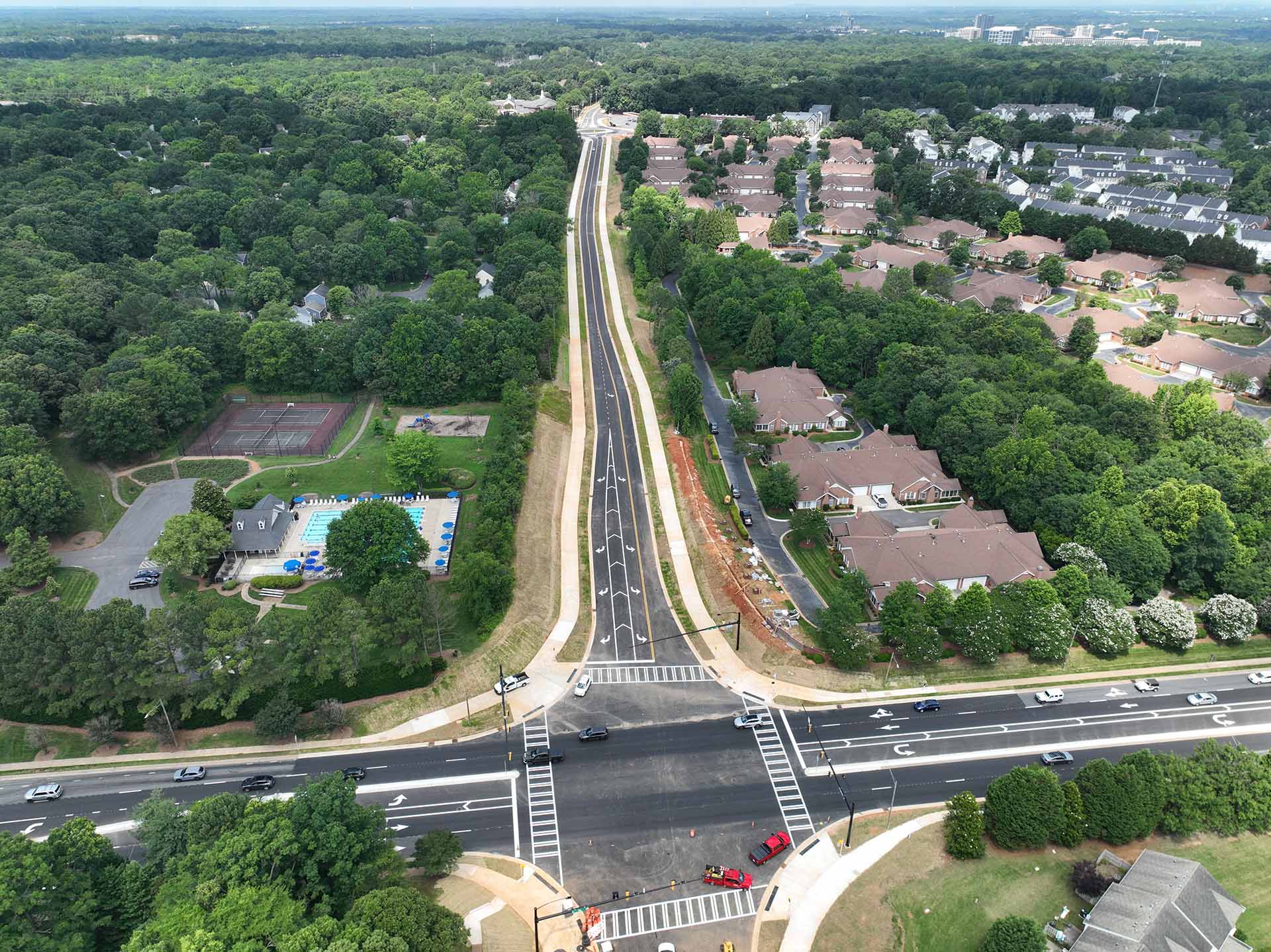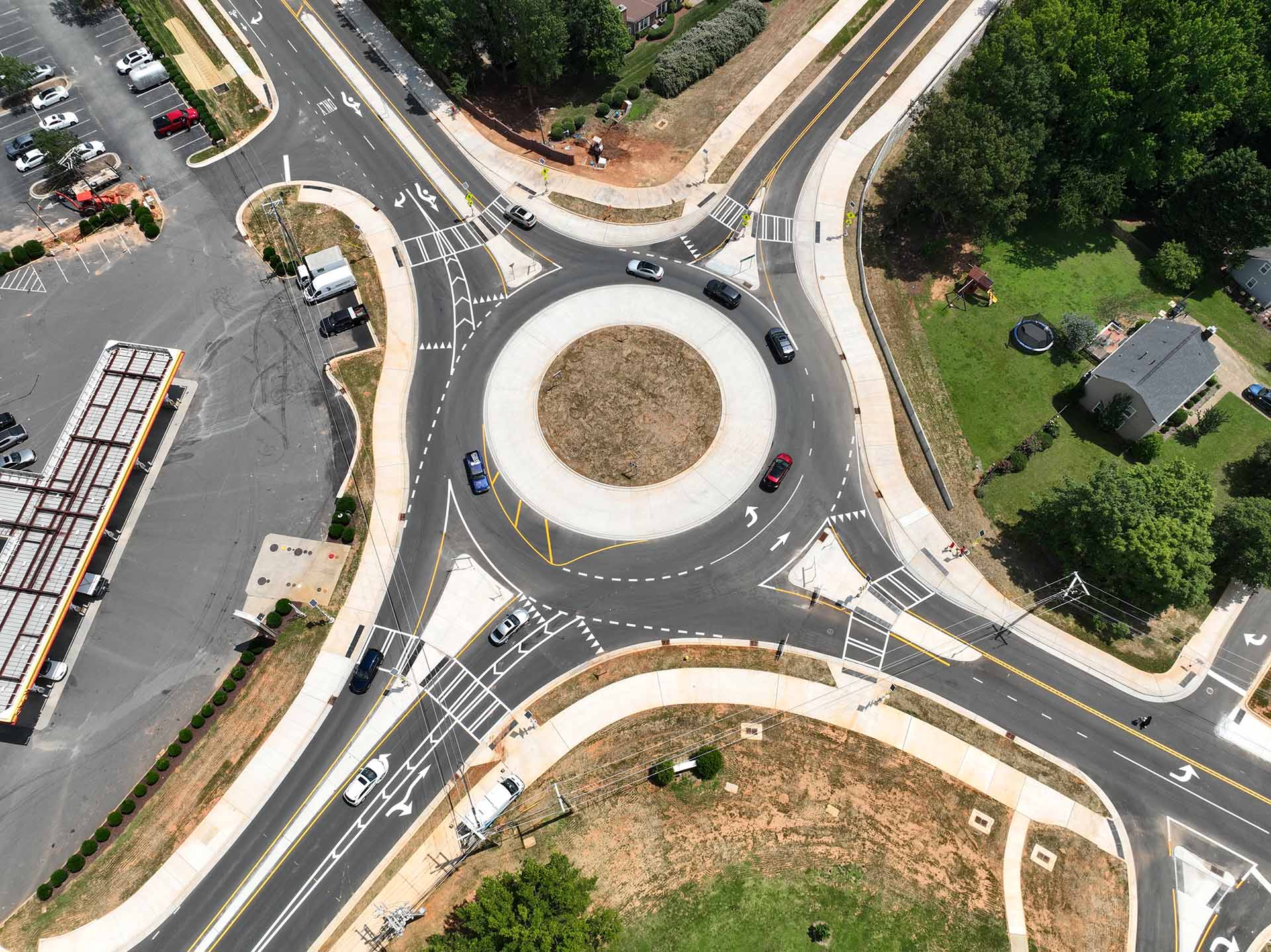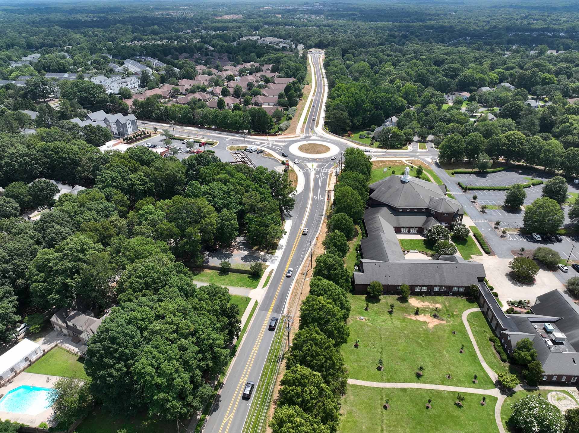 The project introduced a modern variable-lane roundabout, a new signalized intersection, and enhancements at Blakeney Heath Road to optimize traffic operations and safety. Designed with a complete streets philosophy, the corridor featured multi-use paths, dedicated bike lanes, curb and gutter, landscaped buffers, and decorative street lighting, which supported the City’s vision for a multimodal, pedestrian-friendly environment.
