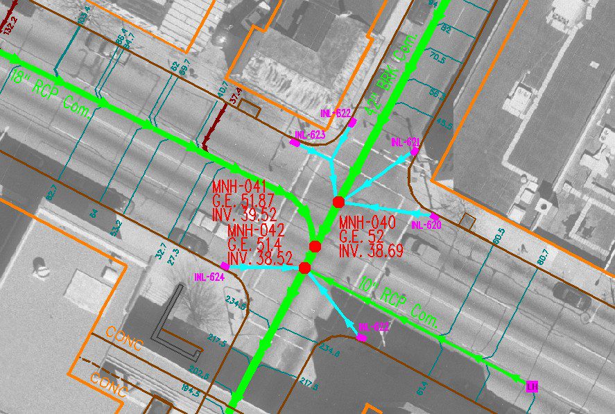 To validate and enhance system accuracy, our field teams conducted extensive surveys across the City, performing manhole inspections to precisely document feature coordinates, inverts, materials, sizes, flow direction, and other critical properties.