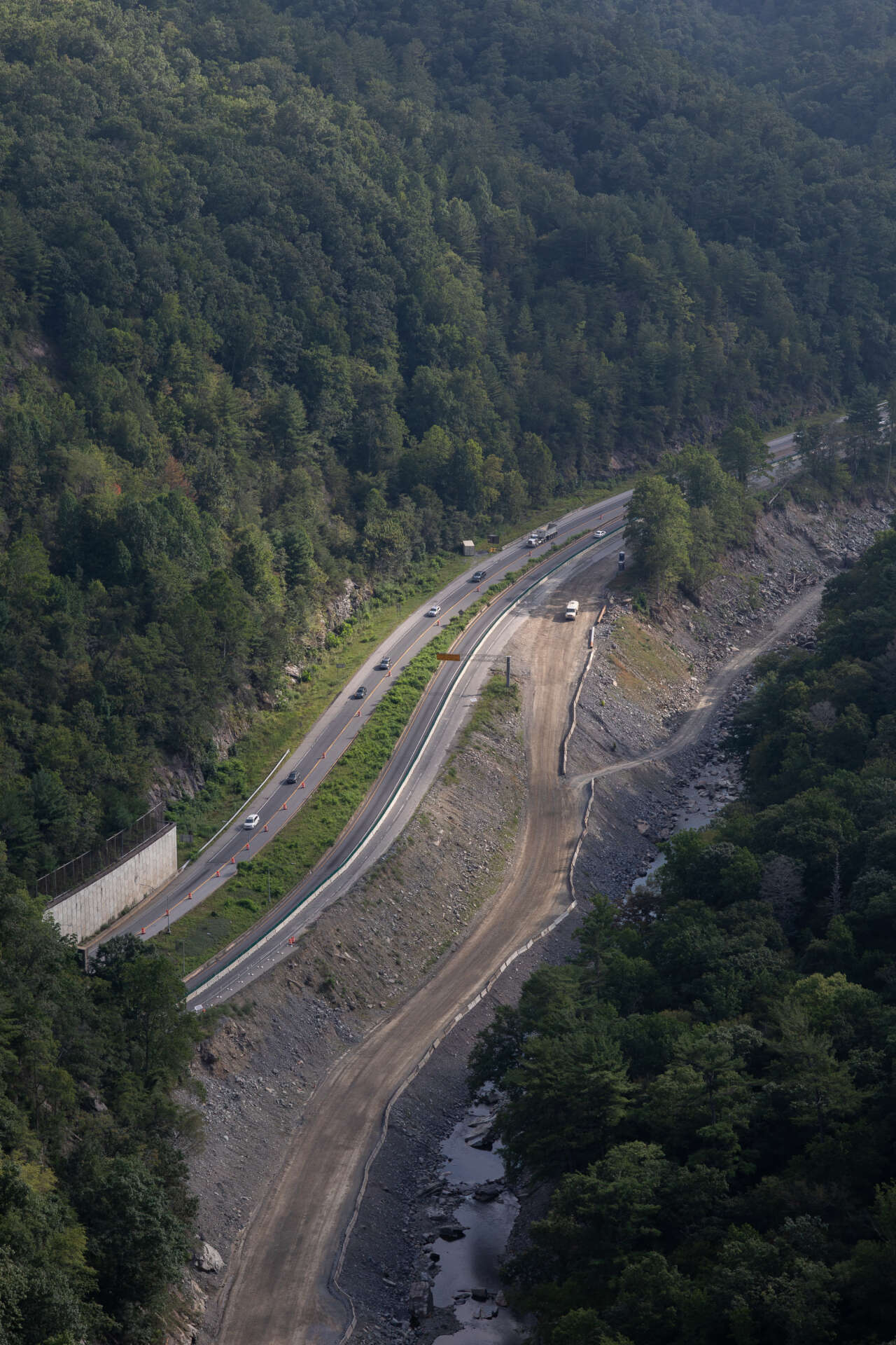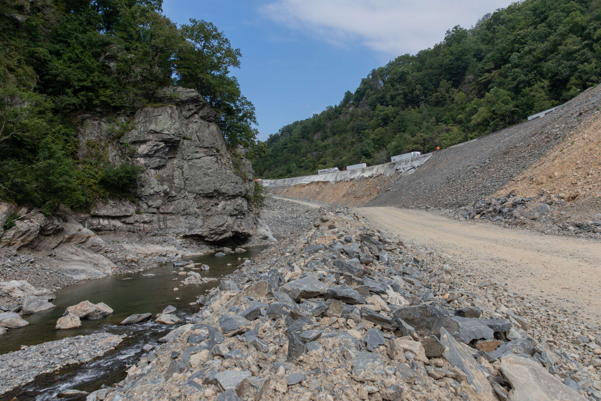 Given the project’s location within a highly sensitive and complex regulatory environment, environmental compliance has remained a central pillar of RK&K’s role. The project footprint includes U.S. Forest Service (USFS) property, requiring adherence to USFS land requirements, specialized biological surveys, and coordination with federal regulators to develop permits and environmental compliance plan. In parallel, adjacent infrastructure and drainage impacts involve a federally regulated hydroelectric power facility, necessitating communication and compliance with operational requirements, access restrictions, and potential flow-release coordination with the facility operator.