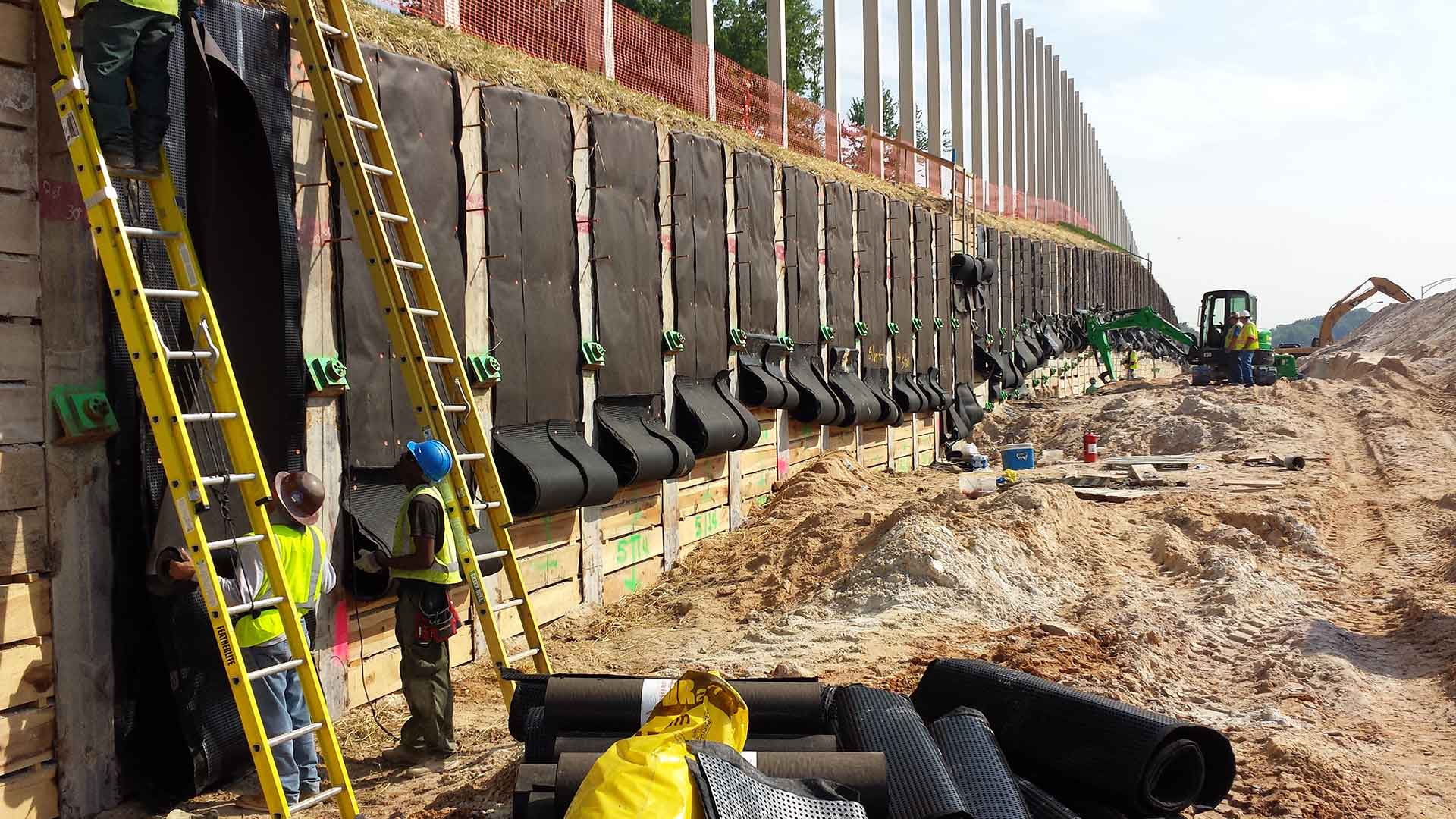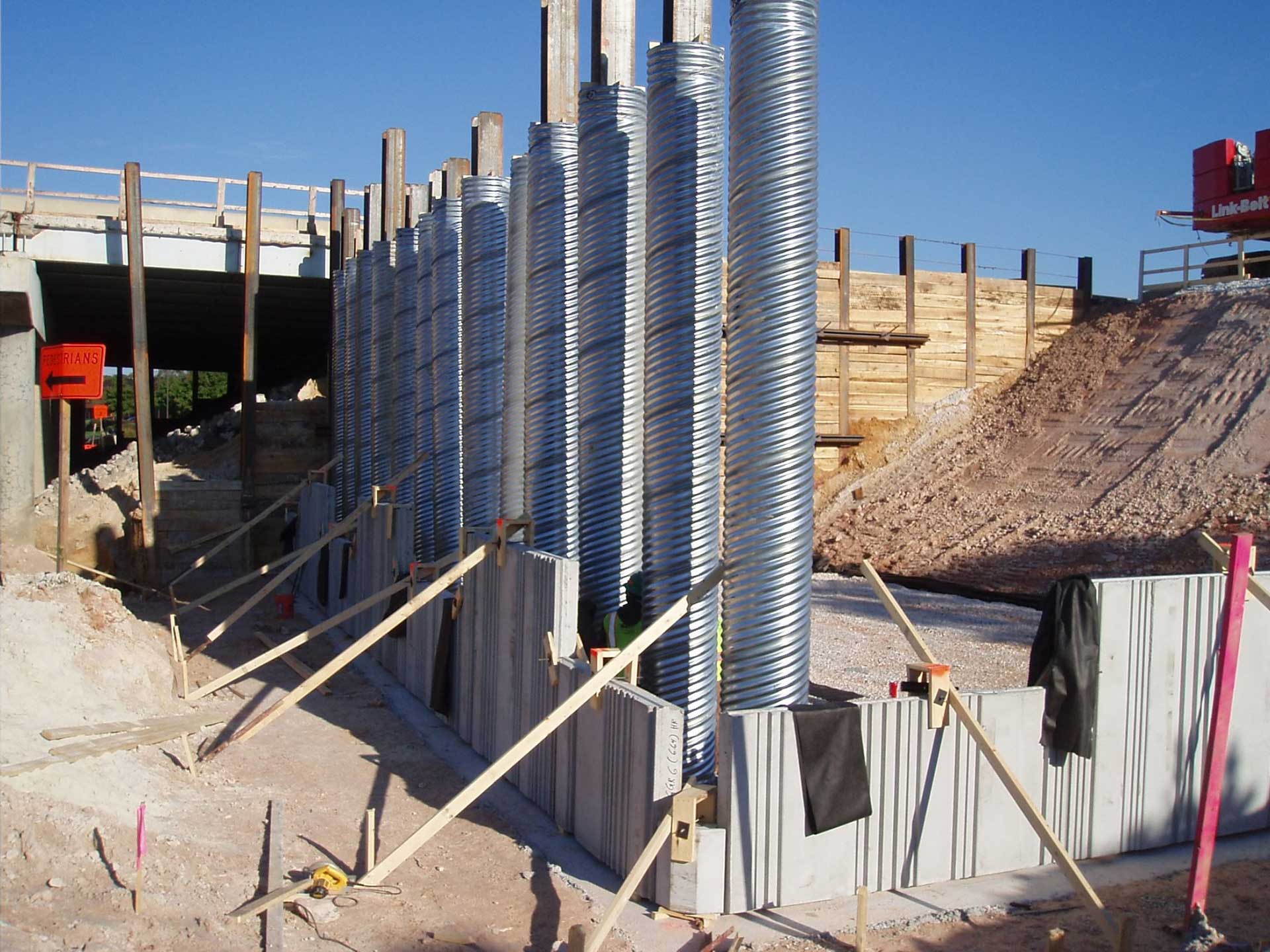 Geotechnical design elements included roadway subgrade, flexible pavement design, retaining walls, multi-span bridges, stormwater management facilities, utility tunnels, and protection of a 108-inch water main.