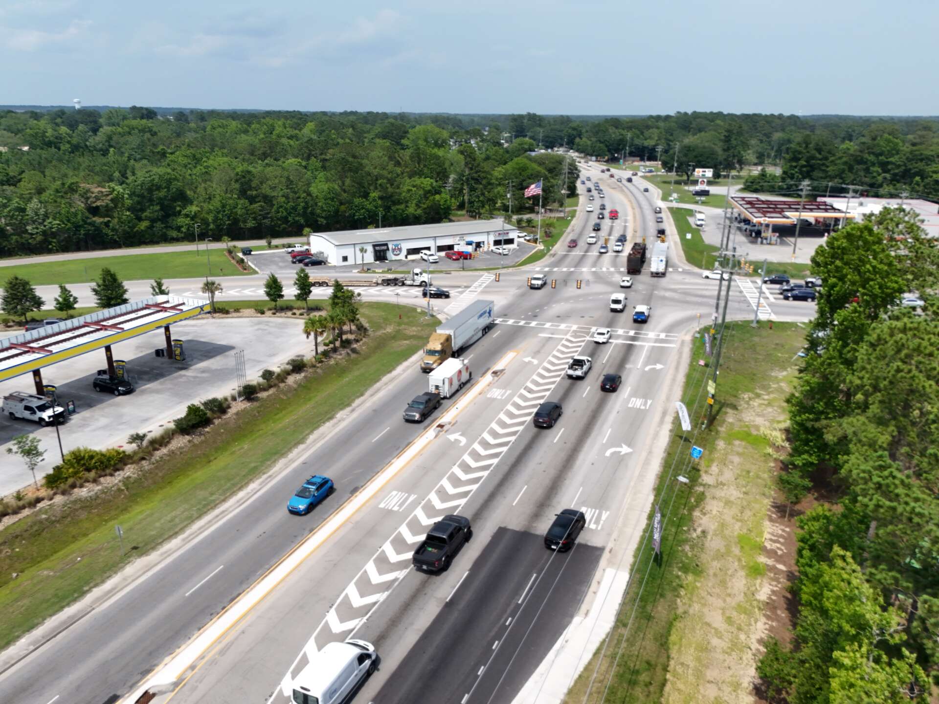 These improvements eliminated the need for additional right of way acquisition and minimized closed drainage system installation in the median. While utility conflicts occurred at intersections where the design added turn-lane storage, overall utility impacts were minimal, and our team worked with utility stakeholders to facilitate relocations. The team also worked with both utility owners and the SCDOT District Utility Office to design in-place pipe protection during construction.