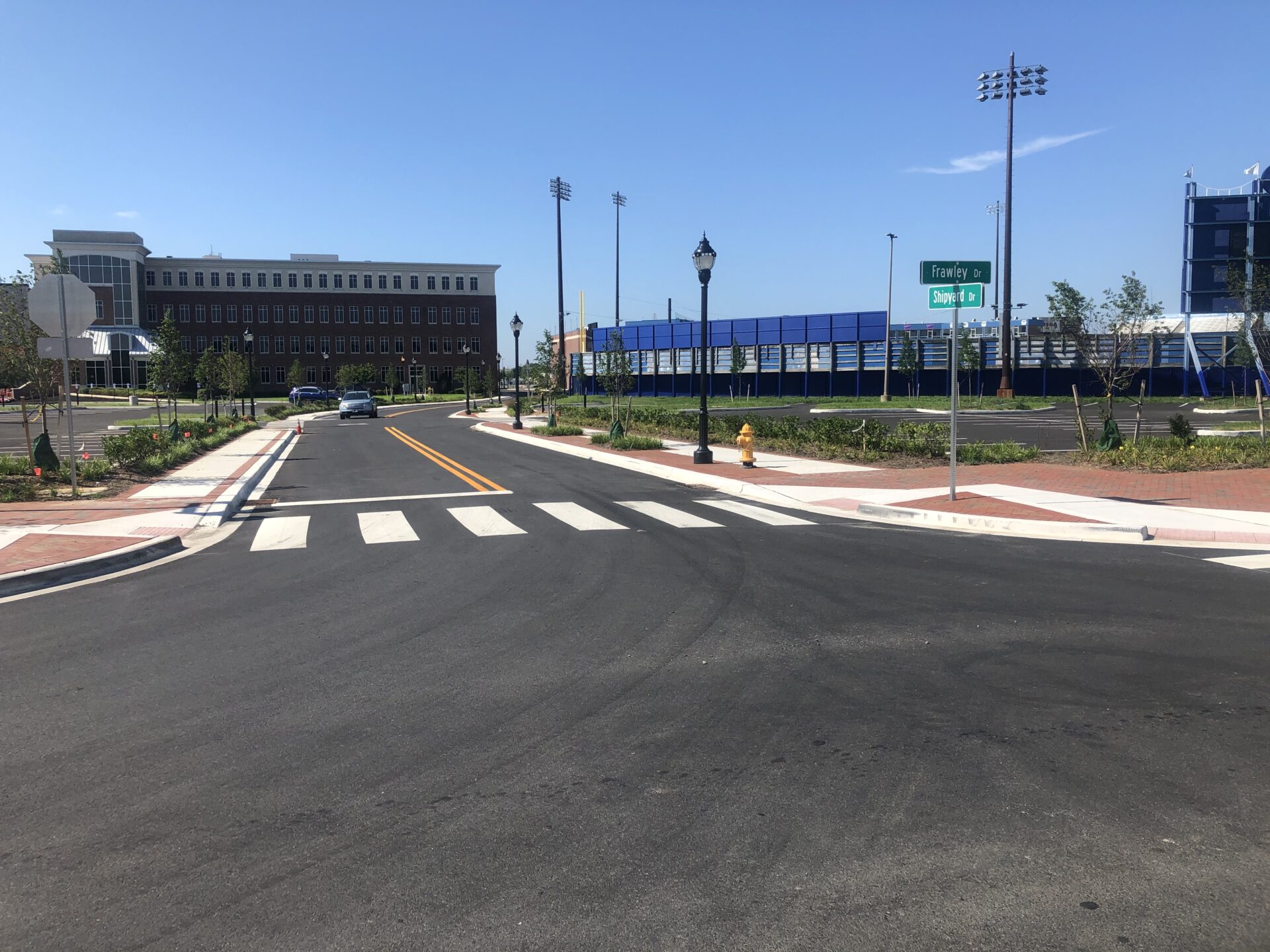 The roadway design involved elevating Market Street by four feet to reduce roadway flooding and improve user safety, but this solution required a complex construction phasing plan. To ensure that Market Street remained accessible to all users while raising the grade of the roadway, RK&K’s construction phasing shifted Walnut Street’s footprint to allow Market Street traffic to continue on the existing pavement while the elevated street was constructed.